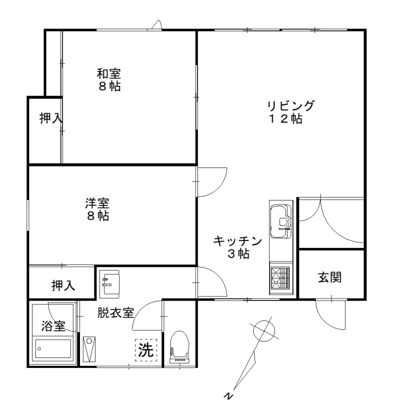 敷金礼金無料!広い間取りの2LDK!クロス張替済み賃料40,000円です